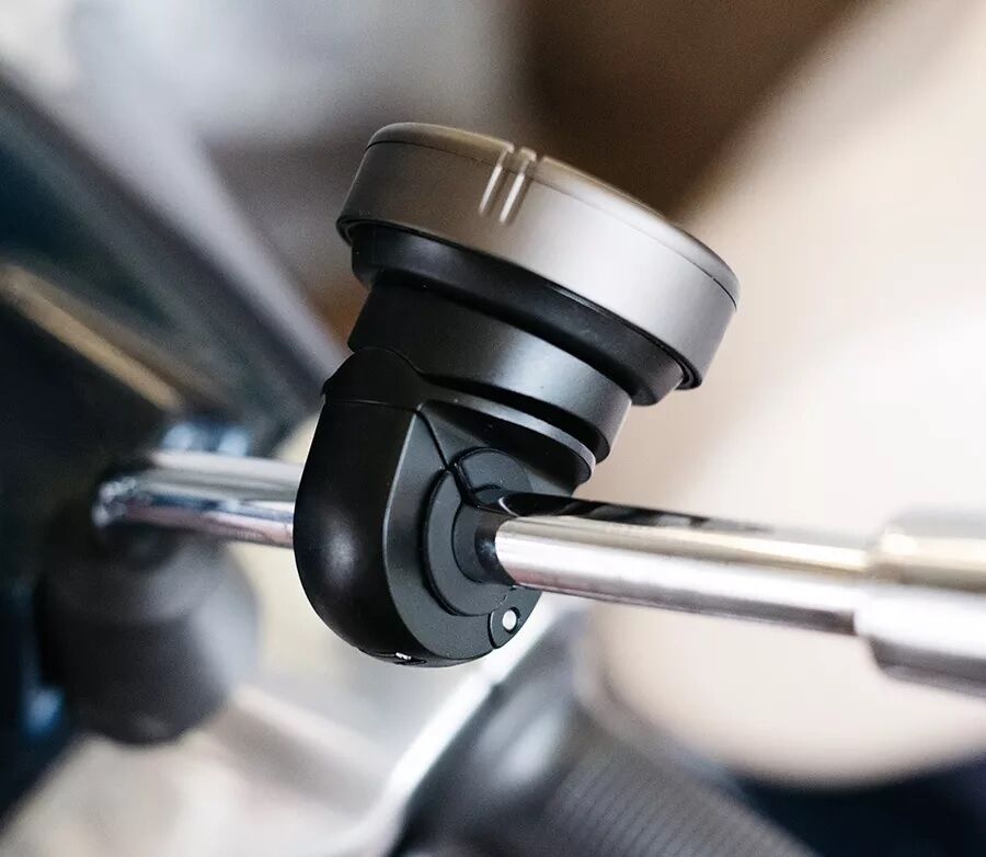 Tento černý eloxovaný kovový držák se skvěle hodí na stopky zrcátek nebo příčné tyče. Polohu svorky, hlavu držáku a vložky držáku můžete otáčet, abyste našli ideální polohu pro vaše Moto II.