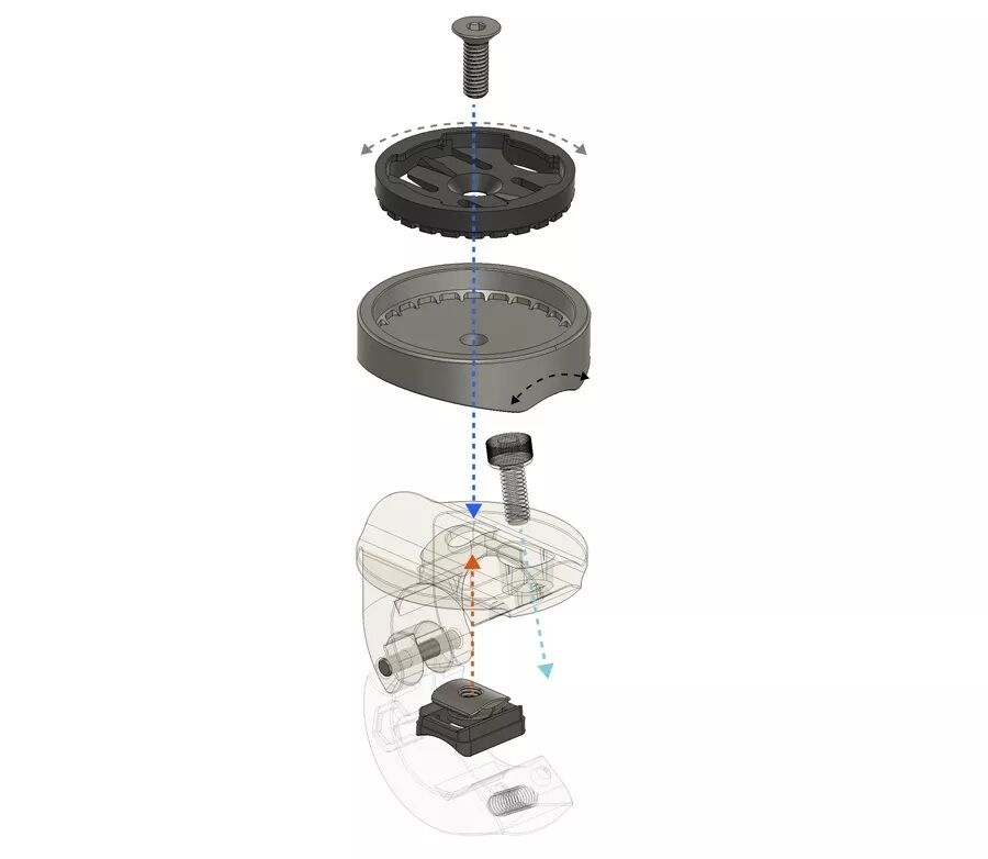 Tato nová konstrukce držáku na zrcátka je jednodušší a lehčí v porovnání s původním designem a používá výklopnou svorku podobně jako nový držák na tyč. Kloubová svorka a jednodílná distanční konstrukce zjednodušuje montáž. Hlavní upínací šroub je skrytý pod vložkou držáku, což vytváří čistší a štíhlejší vzhled. Větší a delší závity šroubů, které pomáhají zabránit uvolnění držáků a zaoblení šroubů. K dispozici je silikonová část, která drží novou posuvnou pojistnou matici na místě během demontáže. Snadnější nastavení s více možnými polohami. Držák je určen k montáži na zpětná zrcátka s kruhovým profilem a přiložené distanční podložky umožňují montáž na nejběžnější průměry. Lze jej také namontovat na úzké tyče příslušenství, které se běžně vyskytují na adventure a enduro motocyklech.
