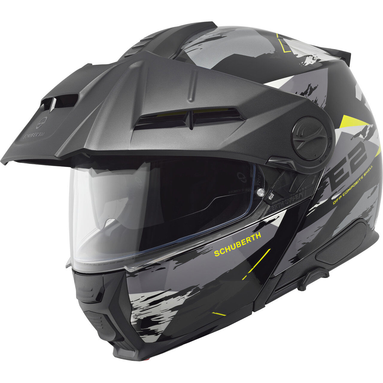 Nová výklopná helma E2 vychází z oblíbeného modelu SCHUBERTH C5. Skořepina je stejná, je vyrobená ze směsi skelného vlákna DFP spolu s Carbonem, díky kterému má ještě lepší schopnost pohlcovat nárazy a navíc je lehčí.