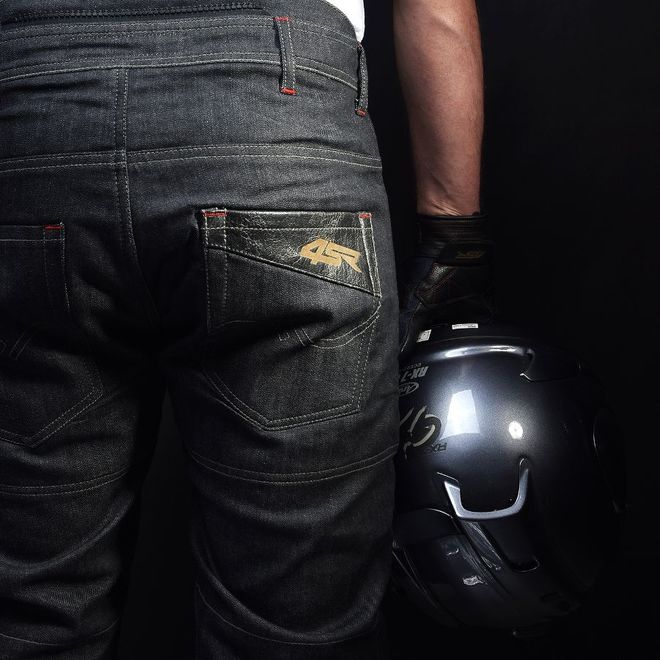 Jedná se o motocyklové kalhoty vyrobené ze 14 uncového denimu, vyztužené v oblasti kolen a sedací části vláknem DuPont™ Kevlar®. Nechybí jim špičkové kolenní chrániče Safe Tech, které jsou umístěné v patentovaných kapsách, s možností změny polohy. Díky kapsám, chrániče přiléhají ke kolenům, nikam se neposouvají a proto jsou kevlarové jeans 4SR jedinečné a nejbezpečnější kevlarové jeansy na trhu. Pro ochranu kyčlí jsou na bocích vloženy paměťové chrániče Viscofoam. Moto jeans Cool Black mají od předchozího modelu vylepšený střih, anatomicky tvarovaná kolena a design, který pasuje k vaší motorce.