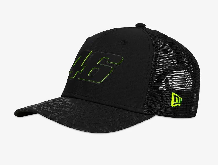 - Na kšiltu je natištěn vzor značky VR|46 v odstínu tónu a na boku je vyšitá ikonická značka New Era