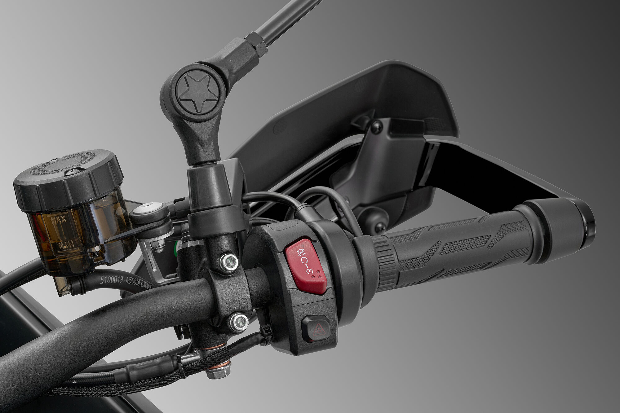 SRT 800SX má na rozdíl od konkurence i praktické podsvícené ovladače, což je dobré pro motocyklové začátečníky, ale též praktické pro zkušené jezdce. Ergonomické a funkční ovladače jsou diskrétně modře podsvícené, což usnadňuje jejich použití při jízdě v noci a zároveň dodává vzhledu motocyklu pěkný styling. Těmito ovladači snadno volíte funkce TFT panelu, takže za jekékoliv situace nemusíte sundávat ruce z řídítek. Máte tak plnou kontrolu nad svým motocyklem ve dne, ale i při jízdě v temné noci.