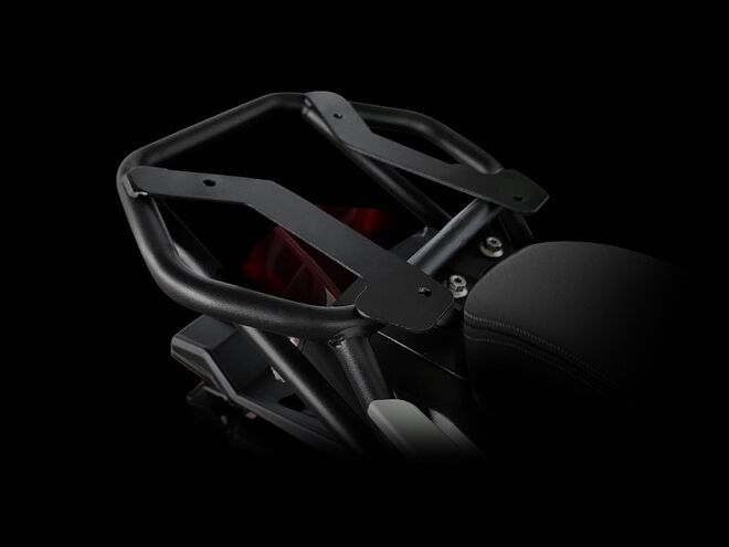 Kvalitní, velmi odolný padací rám umístěný okolo motoru je namontován na zesílených závěsných bodech na hlavním rámu motocyklu a chrání tak motor a části kapotáže v případě nechtěného pádu motocyklu na bok.