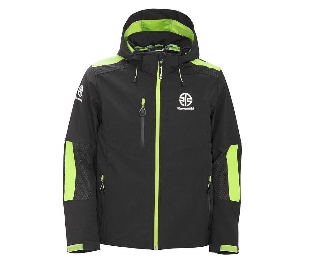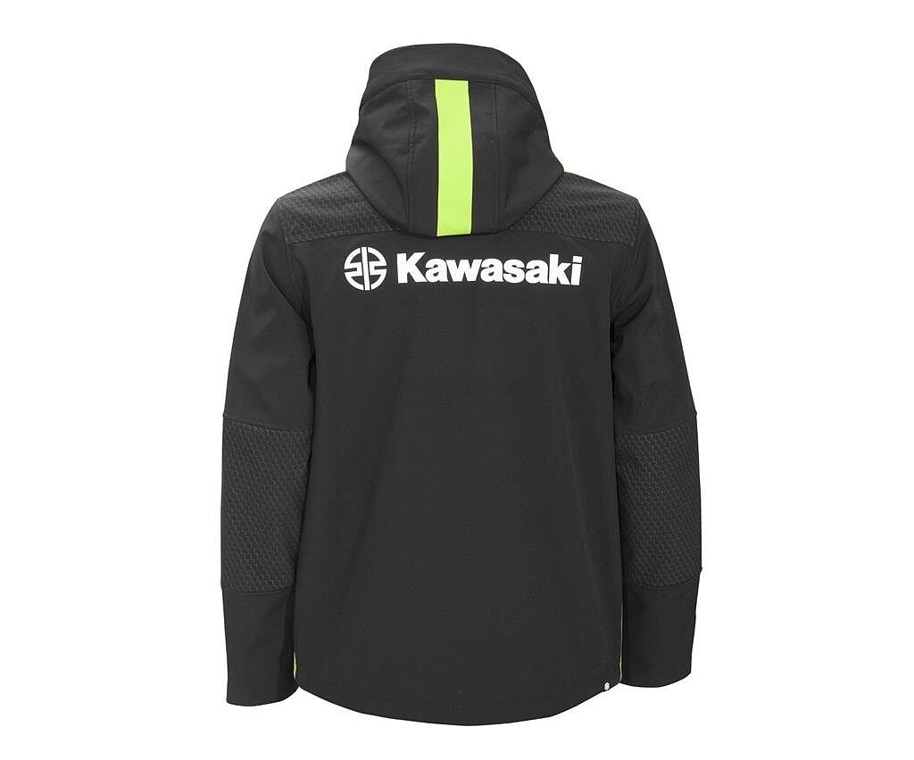 Pánská softshellová sportovní bunda Kawasaki s odepínací kapucí, vnitřními a vnějšími kapsami na zip a s manžetami rukávů nastavitelnými suchým zipem.